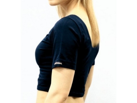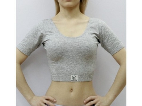 Μπουστάκι με κοντό μανίκι από βαμβακολύκρα. Λαιμόκοψη χαμόγελο για μεγαλύτερη άνεση και στυλ.